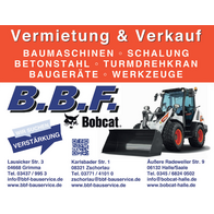 Seit mehr als 30 Jahren ist die B.B.F. Handels- und Vermietungs-GmbH mit rund 80 Mitarbeitern im Familienbesitz. Als wachsendes Unternehmen haben wir unseren Hauptsitz in 04668 Grimma, eine Niederlassung in 08321 Zschorlau und eröffnen demnächst eine weitere Niederlassung in Halle/Saale.