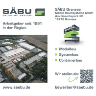 Seit 1991 ist SÄBU in Gransee ein verlässlicher Arbeitgeber in der Region. Wir fertigen moderne Modul- und Systemgebäude – flexibel, nachhaltig und mit hoher Qualität. Rund 80 Mitarbeitende aus verschiedenen Handwerksbereichen wie Metallbau, Elektrik, Trockenbau und Schweißtechnik arbeiten hier Hand in Hand. Als Teil eines familiengeführten Unternehmens mit über 100 Jahren Geschichte bieten wir sichere Arbeitsplätze, gute Entwicklungschancen und ein kollegiales Umfeld.