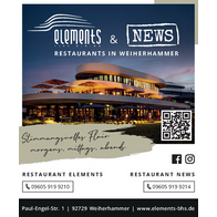 Wir heißen Sie herzlich willkommen in den Restaurants “Elements” und “News” in der BHS in Weiherhammer. Bei uns genießen Sie sowohl kulinarische Highlights aus der regionalen Küche als auch internationale Köstlichkeiten. Ob drinnen in charmanter Atmosphäre oder draußen auf der herrlichen Terrasse, in beiden Restaurants scheint die Zeit viel zu schnell zu vergehen.